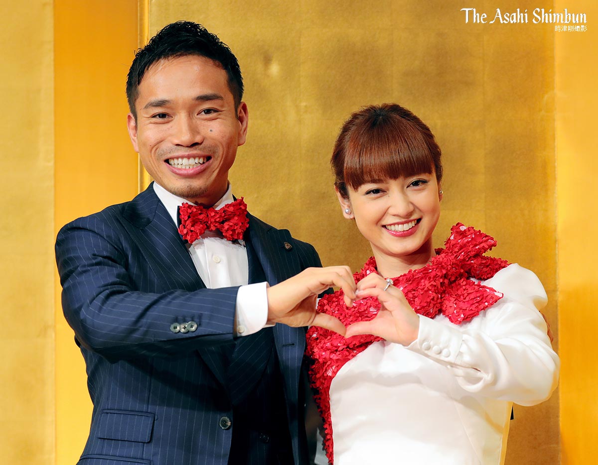 サッカー日本代表DFの長友佑都選手(30)と女優の平愛梨さん(32)が2016年12月24日、都内ホテルで記者会見を行い、婚約を発表した。